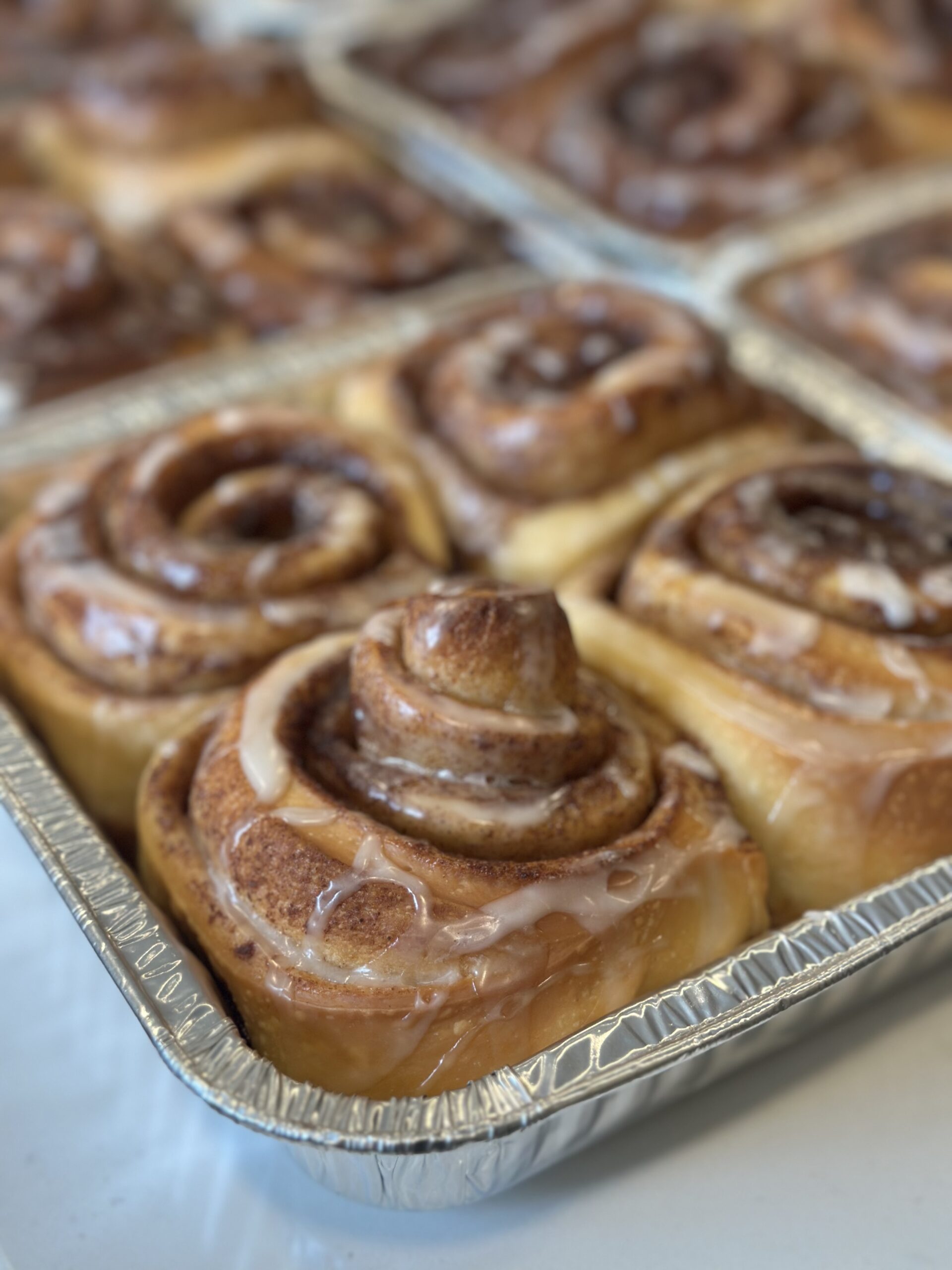 Soft, slow-fermented rolls swirled with cinnamon and brown sugar, topped with vanilla glaze. Naturally leavened and made in small batches.